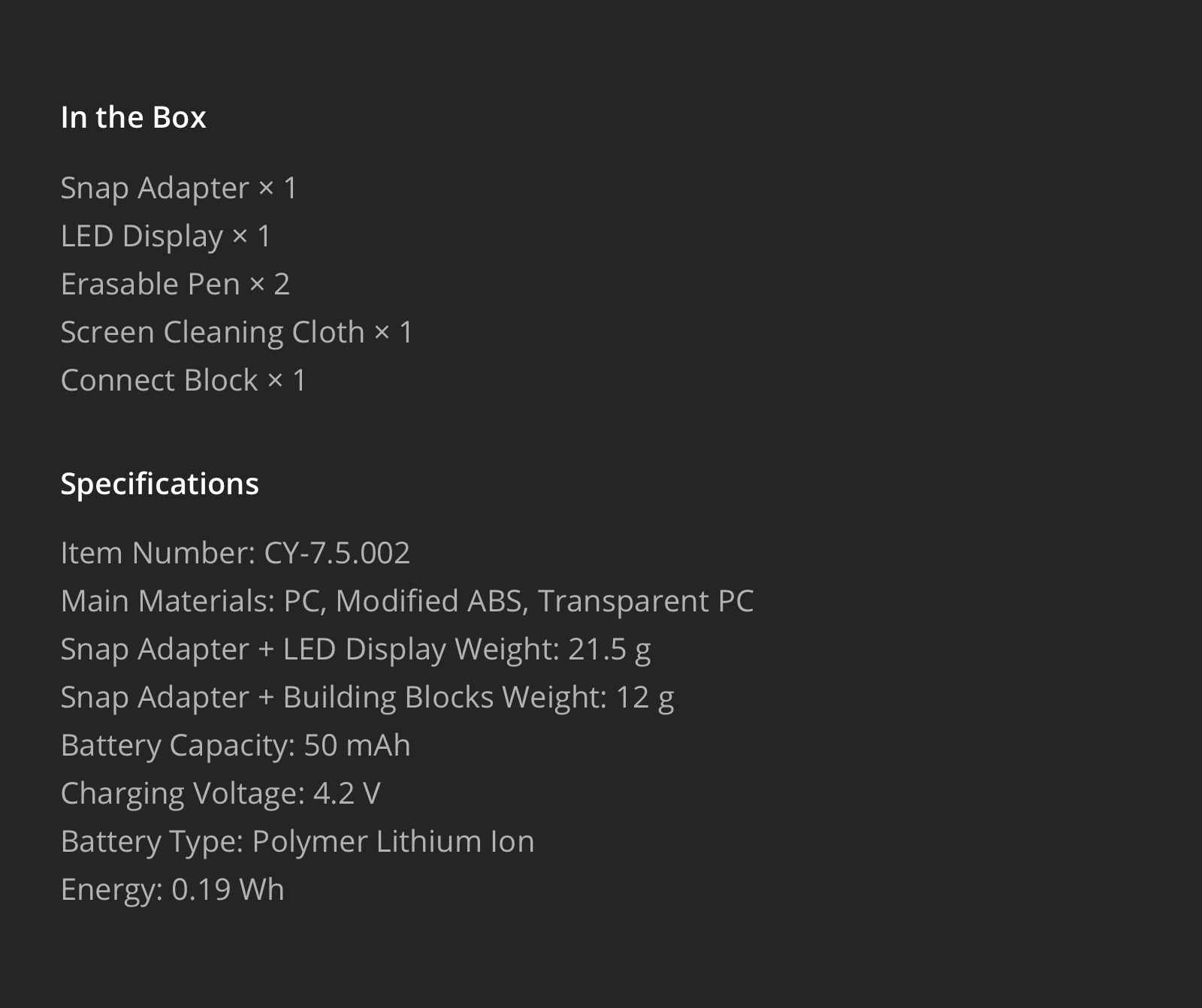Specifications: