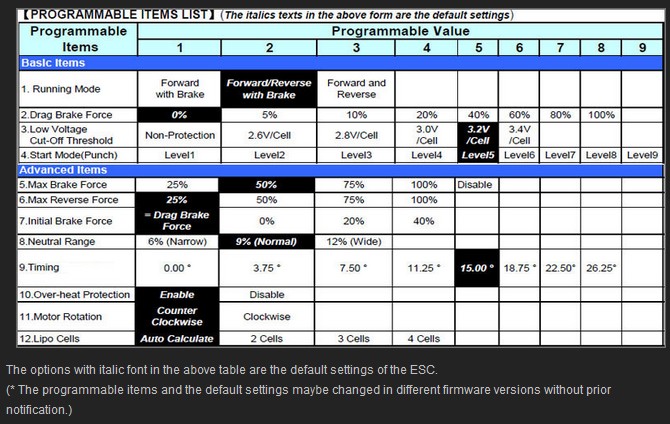 7 Internal timing can be changed easily to make the ESC suitable for various of motors.