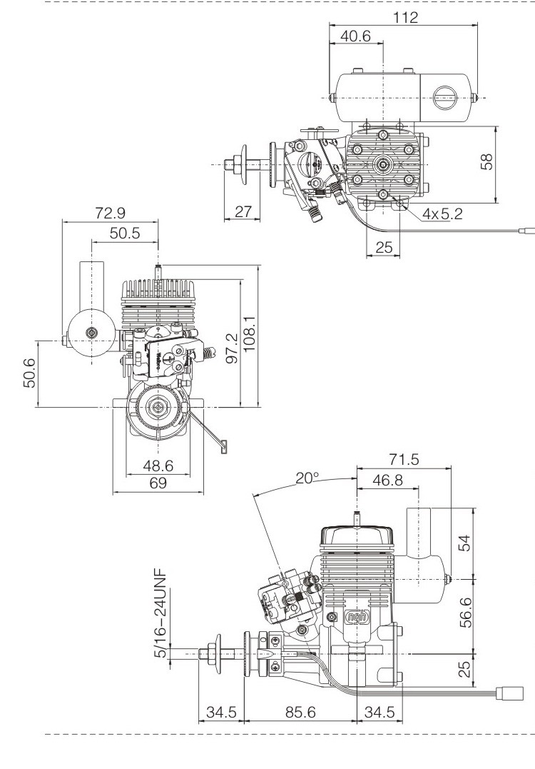 Pre-Mix Oil Ratio and Type Break-in with 20:1, General 25:1, For Air Cooled Engines (Oil percentage can not less than 4%)