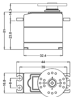 Torque: 54.15 / 66.65 oz.in (4.8v/6v) 3.9 / 4.8 kg.cm