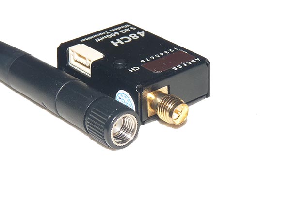 Transmit power: 600mW Working channel #: 48 Power supply: 7-19V Working current: 300mA @12V Antenna connector: RP-SMA, jack (TX side) See connector type diagram Dimension: 32 x 23 x 11mm Weight: 14g