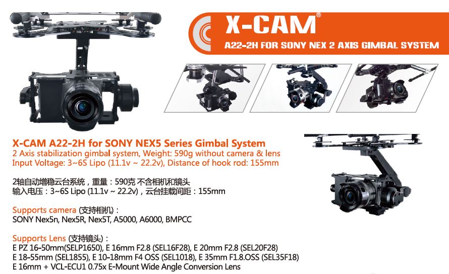 X-CAM A22-2H 2-axis Brushless Gimbal for NEX5/ NEX7/ BMPCC/ A5000/ A6000 |