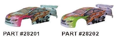 Hi-speed manufatured 1/16 scale on-road touring car. Other than same scale hobbies, on-road touring cars would never fail to run faster on flat surfaces than other hobbies cars do. All on-road touring cars are built in low chassis design and provides aligned running in line.
