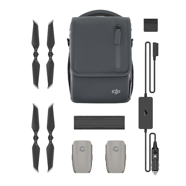The Mavic 2 Fly More Kit includes two Intelligent Flight Batteries, a Mavic 2 Car Charger, a Battery Charging Hub, a Battery to Power Bank Adapter, Low-Noise Propellers, and a Mavic 2 Shoulder Bag, providing you with comprehensive support during shooting.