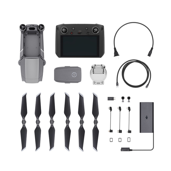 1 x aircraft 1 x mavic 2 smart controller 1 x intelligent flight battery 1 x battery charger 1 x gimbal protector 3 x propellers (pair) 2 x communication cable
