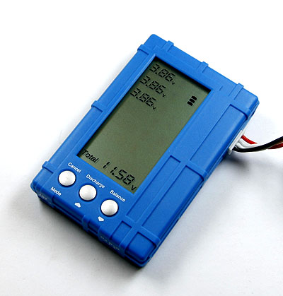 The Battery Meter/Balancer/Discharger is designed for Li-Polymer and Li-Fe battery, it can measure battery voltage precisely and execute balance work for series batteries, or for battery discharge in order to for long time storage to avoid battery damaged. It can be used as a portable battery meter as it is lightweight, self-contained and with a large display. You can also bring the Balancer to the flying field for battery checking purpose.