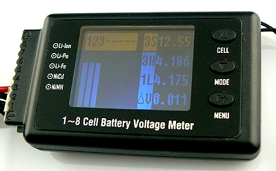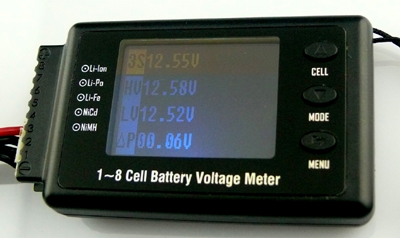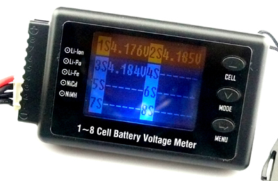 * Battery voltage meter can not only measure 1-8cell Lipo battery individual voltage, but also measure NiMh, NiC, Pb battery pack voltage.