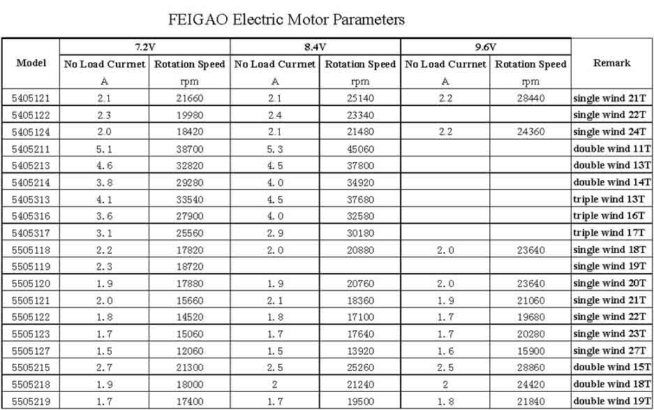 Rotational speed:21660RPM/7.2V