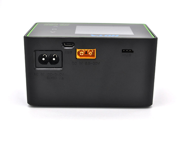 Input Voltage AC100~240V / DC 6.5~30V Charge Current 0.1~26A Charge Power DC 700W AC 200W Discharge Power Internal discharge:30W(balance port 10W) Regenerative discharge: 700W Battery Type LiHv/LiPo/LiFe/Lilon/Lixx : 1~6S NiZn/Nicd/NiMH : 1~16S Smart Battery : 1~6S Lead Acid(Pb) : 2~24V Enelop : 1~14S Balance Current 2000mA Discharge Current 0.1~5A External Discharge Current 1~26A USB Output 5V / 2.1A Dimensions 108 ×67 ×60mm Net Weight 410g