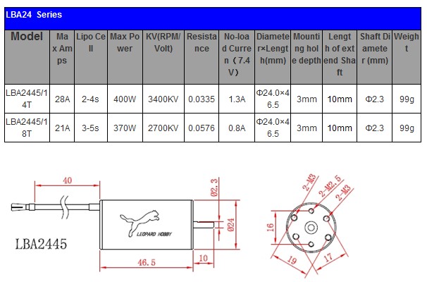 LEOPARD 2445/3400KV Inrunner Brushless Motor LBA2445/14T