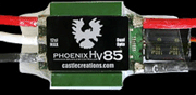The Phoenix HV-85 has the power handling capability for just about anything you can put into the sky! With a total ability of over 4,000 watts (that's 5 horsepower!), The Phoenix HV-85 is right at home in all quarter and giant scale fixed wing aircraft, and large helicopters alike. Our factory pilot Dan Landis has one as his secret weapon for this season's FAI pattern competition, including the Nats in Muncie. Compare the price, size, and capability of the Phoenix HV-85 to the competition, and you'll understand the Castle Creations advantage. Top competition F3A, giant scale aerobatics, and large helicopters - The Phoenix HV-85 does it all, and keeps it's cool while flowing the power!