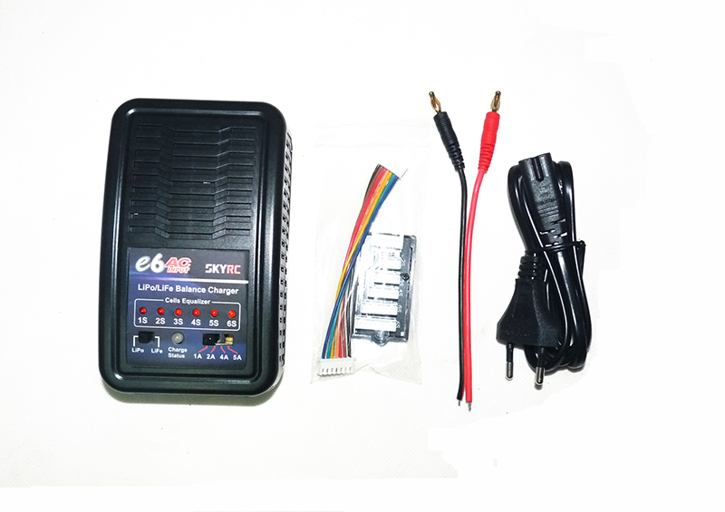 SKYRC e6 Charger is an economic, high quality 100-240V AC balance charger, designed for charging LiPo and LiFe batteries from 2-6 cells in balance mode. The circuit power is 50W and max charge current can reach to 5A. There are four kinds of charge current 1A/2A/4A/5A that can be selected. You could select the proper charge current according to the battery capacity.