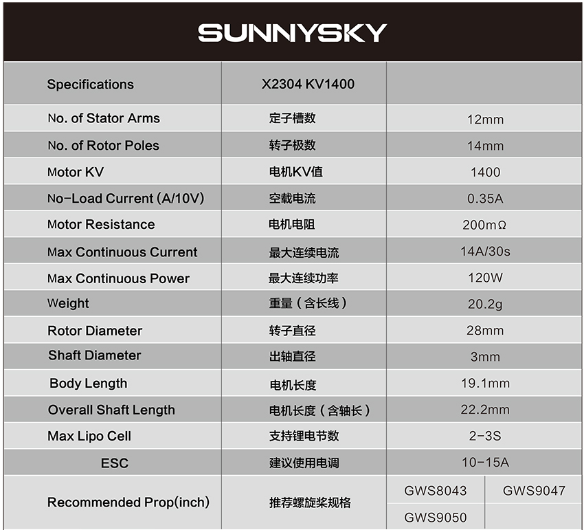 SUNNYSKY X2304-V3 1400KV Outrunner Brushless Motor