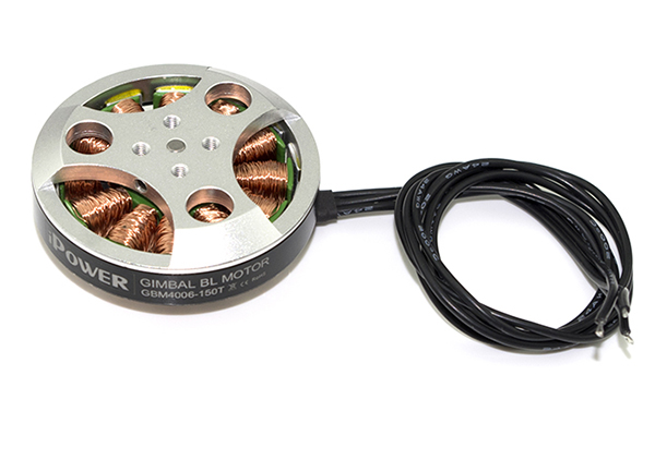 Specs: Model NO.:GBM4006-150T Weight:83g Motor Dimensions:50x14mm Stator Dimensions:40x6mm Copper wire(OD):0.21mm Configuration:12N14P Resistance:13.5 ohms Wind type and termination method:Star style Pre-wounded with 150 turns,3.17mm shaft Bottom mounting holes: 16 and 19mm center to center Top mounting holes: 12mm center to center Camera range: 400-800grams(nex5n size)