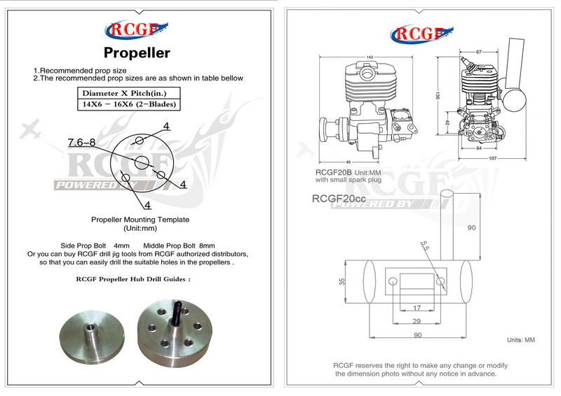 Propeller: 15x 6 9500RPM/ 16x 6 9000rpm (standard two leafs prop)
