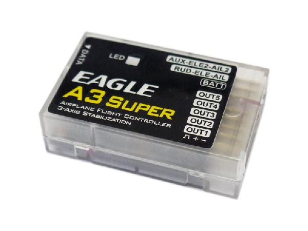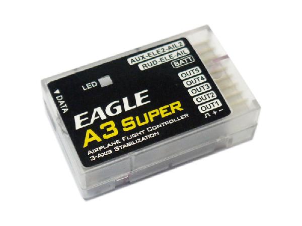 A3 Super is the latest RC flight controlsystem of EAGLE's A3 Series. It is designed especially for fixed-wing. With anintegrated built-in high precision 6-axis (3 gyro + 3 acc) MEMS sensor andadvanced attitude and PID control algorithm, the controller can accuratelydetect the angular velocity and attitude of the aircraft and issue commands toall servos, which enables the balance and stability throughout the flight. A3Super provides mixing functions of delta-wing (flying-wing), v-tail and alsosupports separate dual aileron and dual elevator controls. It can be used innearly any type of RC aircrafts.