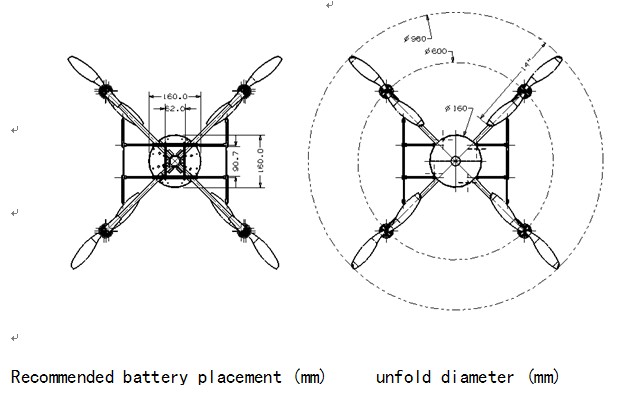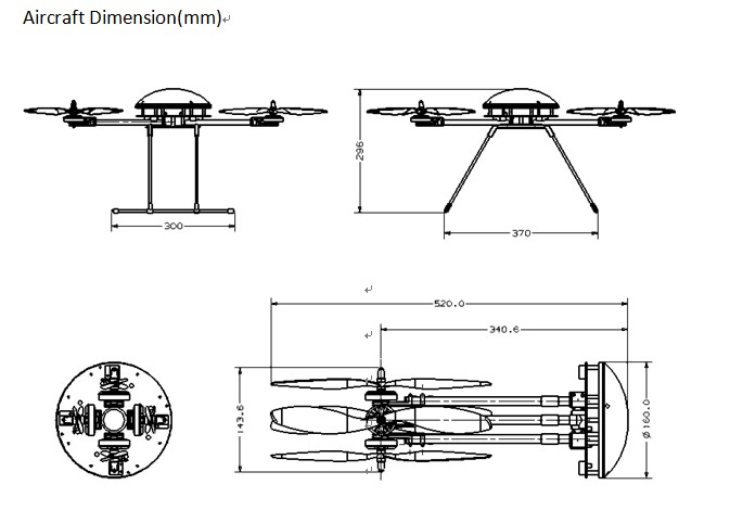 Aircraft dimension | 634 × 634 × 296 | mm |