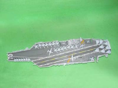 On March 13,1982,The “CARL VINSON” mutli-function nuclear power aircraft carrier(CVN-70)served the U.S.navy. It is the 3rd Nimitz class carrier and costed more than US$2 billion. The standard draft of Carl Vinson is 81600T. The full draft is 96300T, the largest knots is 33, the continues traveling ability is 800-1000 thousand/30 knots, the length of the carrier is 332.9m, the width is 40.8m, the draft is 11.3m, The length of the flight deck is 333.9m, the length of angle is 237.7m,the width of flight deck is 76.8m. The personnel formation is 3184 and the regiment is 2800. The power device is used 4 turbine generator, 2 water compressed piles and 4 shafts propeller, the total capacity is 280 thousand horse power, the self sufficient force is 16 days. It can perform the war duty under the 6class sea condition and can travel safely under 12 level typhoon.