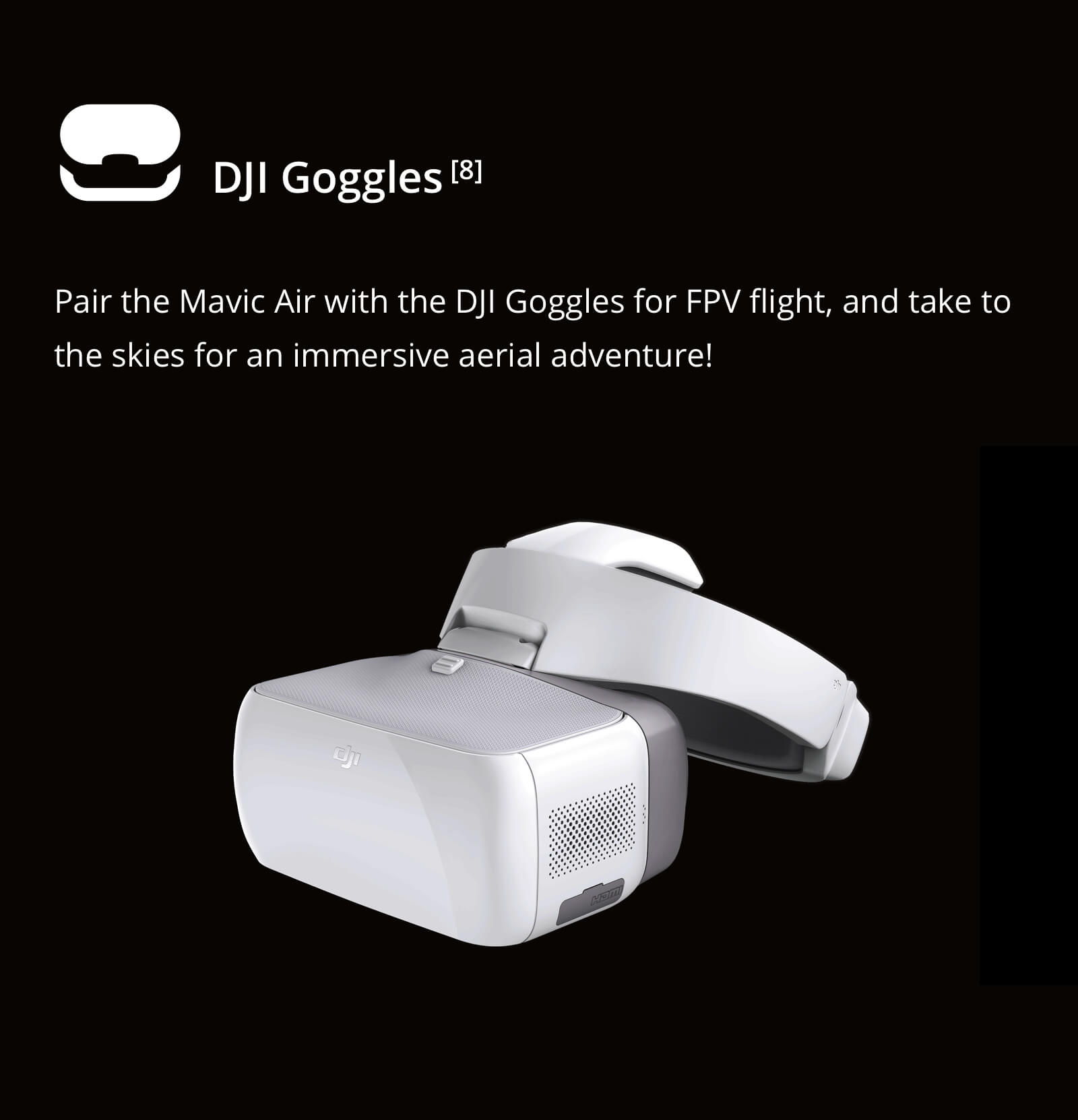 [8] A USB cable is required to connect the DJI Goggles to the Mavic Air.