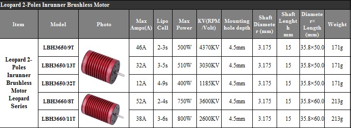 LEOPARD 2-pole 3600KV Inrunner Brushless Motor LBH3660/8T