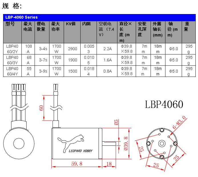 LEOPARD 4060/1500KV 4-Poles Inrunner Brushless Motor Red LBP4060/4Y