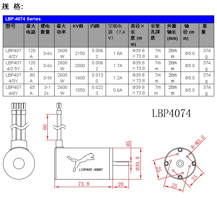 LEOPARD 4074/2000KV 4-Poles Inrunner Brushless Motor LBP4074/2.5Y
