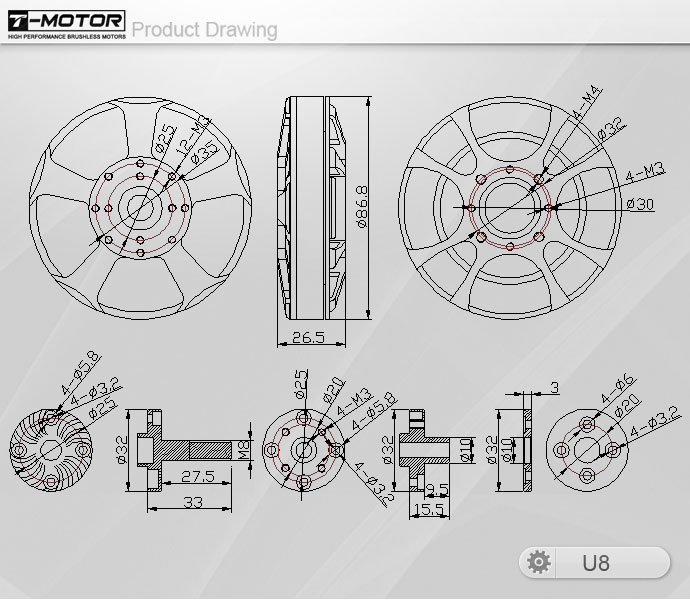 T-Motor U8 Series 135KV Outrunner Brushless Motor for Multi-copter