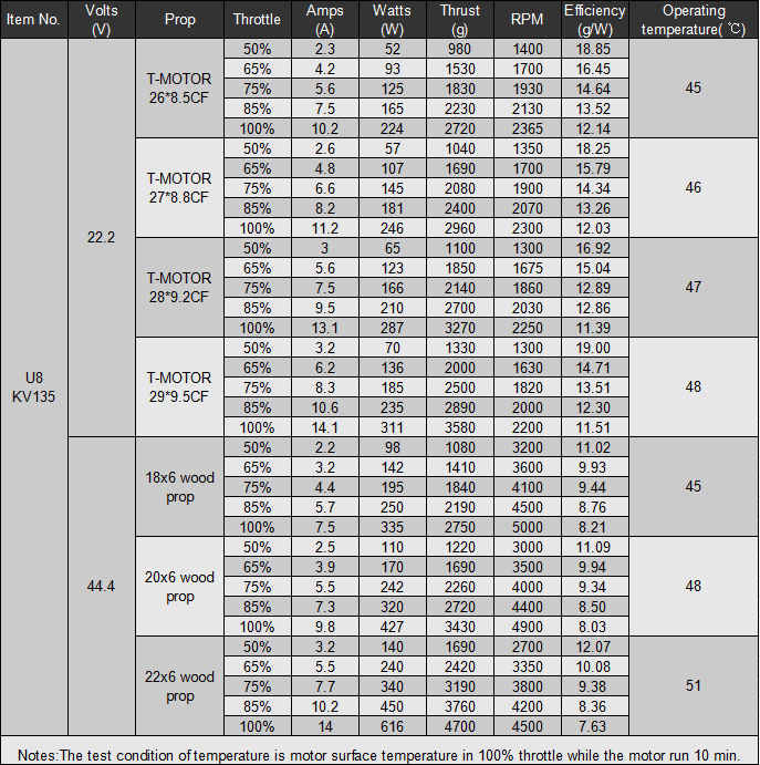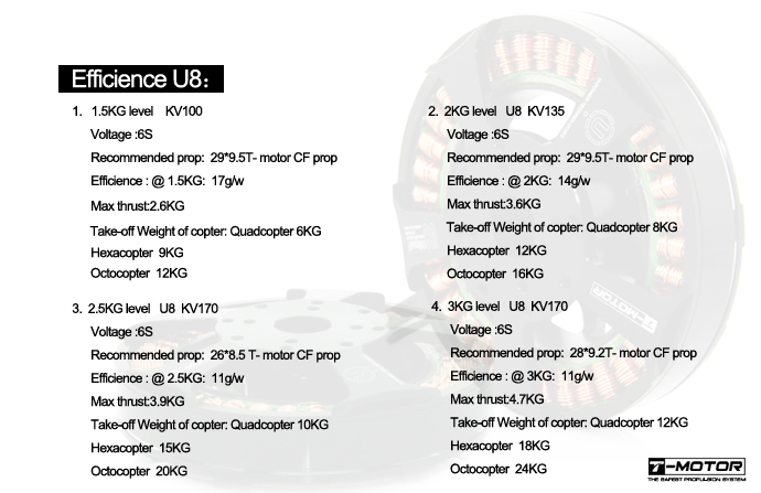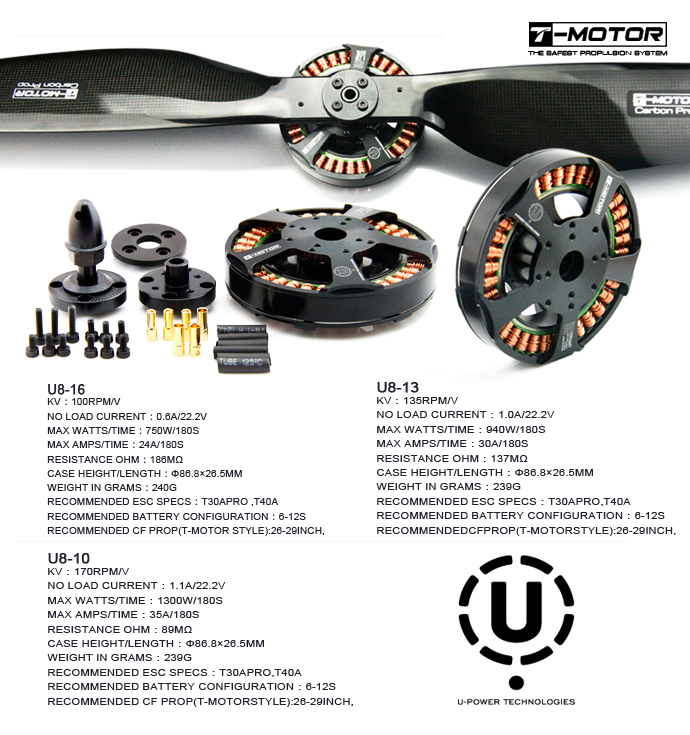 T-Motor U8 Series 135KV Outrunner Brushless Motor for Multi-copter (6-12S)