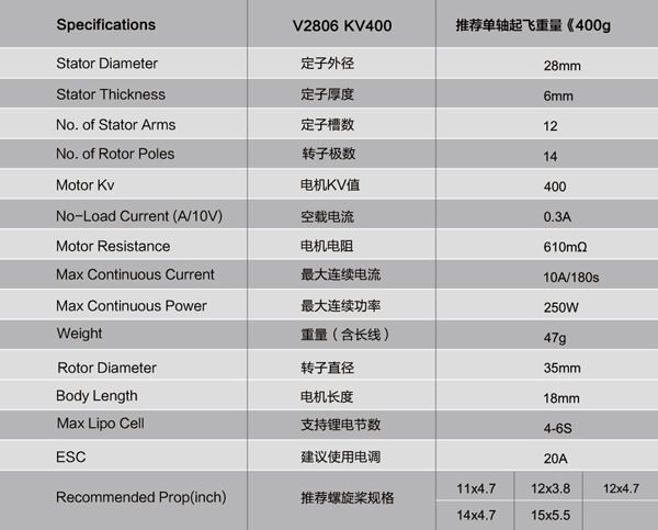 SUNNYSKY V2806 400KV Brushless Motor for Multi-rotor