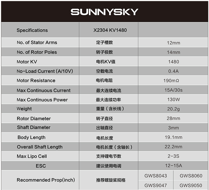 SUNNYSKY X2304-V3 1480KV Outrunner Brushless Motor