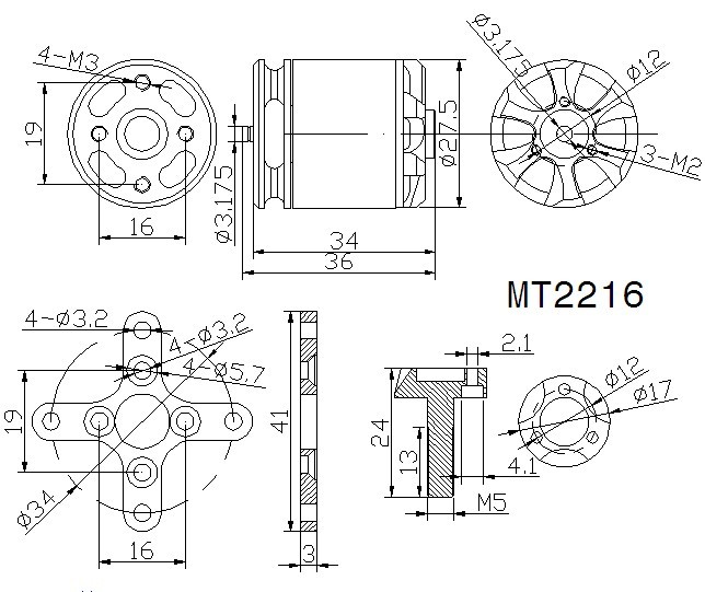 T-Motor MT2216 900KV Outrunner Brushless Motor for Multi-copter (3-4S)