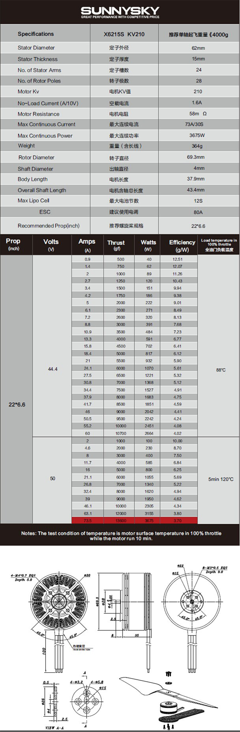 SUNNYSKY XS6215S 210KV Motor for Multi-copter