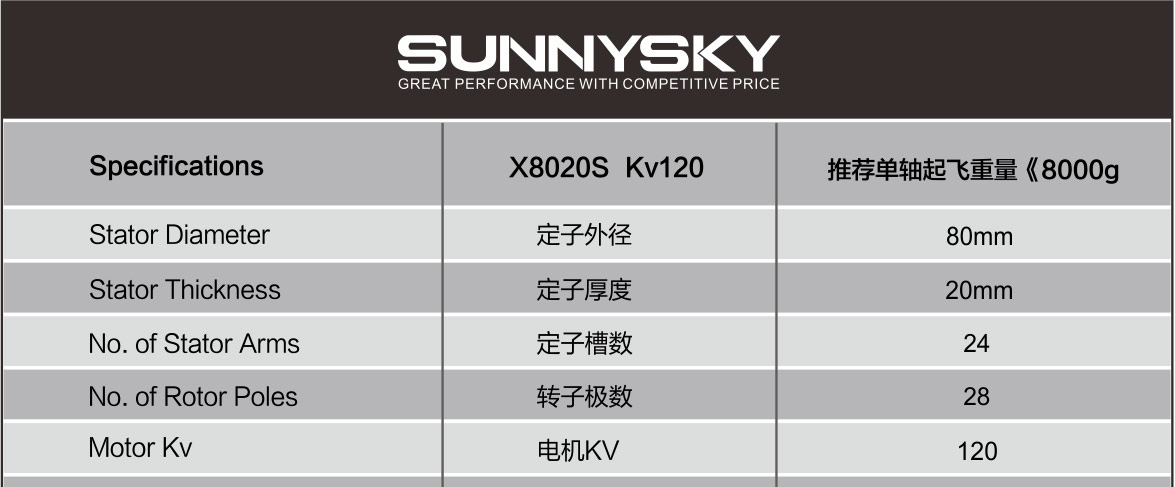 SUNNYSKY XS8020S 120KV Motor for Multi-copter