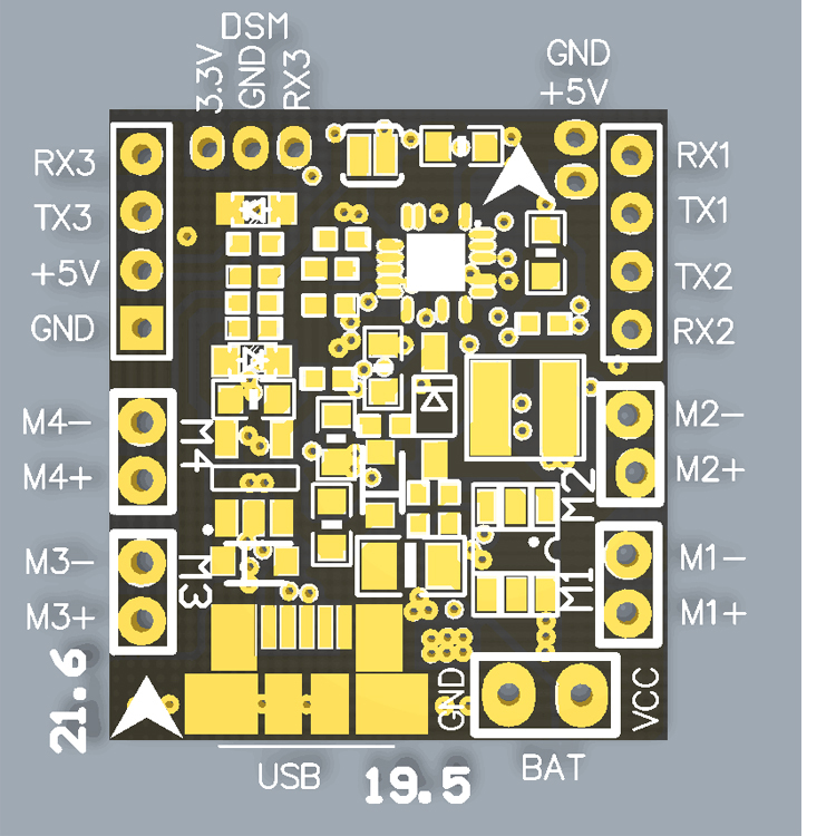 Features: 1. Tiny F3_EVO_Brush revision is out of the F3 EVO SP RACING is based on a SP RACING F3 EVO firmware 32 brush flight control. 2.The flight control support 1S (4.2V) 3. Independent design of the circuit structure, comes with the Voltage control technology, 1S lipo battery input, the UART1/2/3 output 5V, DSM port output 3.3V 4.Using STM32F303CCT6 + MPU6500, advanced hardware platform F3 guarantee more stable flight 5. With a large current NMOS transistors, operating current of up to 10A or more. Each Brushed motor is equipped with freewheeling diodes. 6.Support for PPM, SBUS, DSM/DSM2/DSMX receiver input signal. 7.In support of the world almost all hollow cup motor, including 1020 coreless motor.
