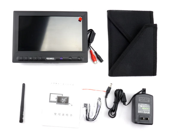 Includes: 1 x monitor 1 x 2db antenna 1 x sunlight shield 1 x AC/DC adapter 12V 1 x instruction manual