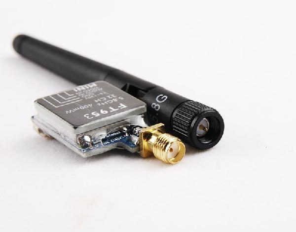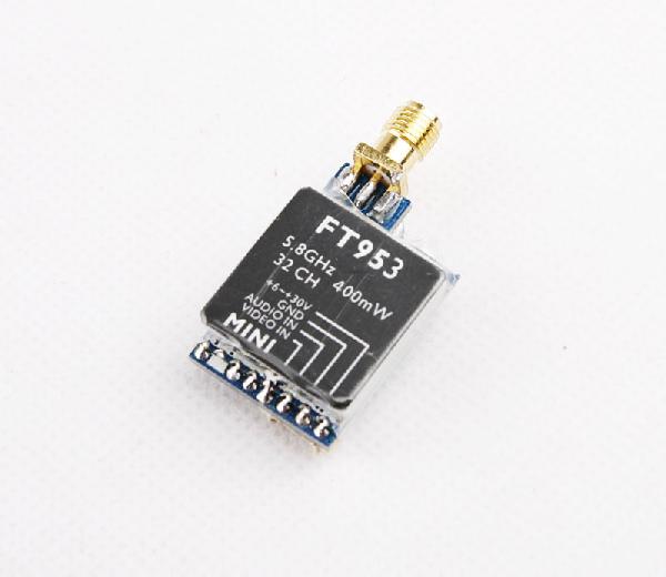 Transmit power: 400mW Working channel #: 32 Power supply: 6-30V Working current: 220mA ±10mA@12V Supported video formats: PAL/NTSC/SECAM (AUTO) Antenna connector: SMA, jack (TX side) See connector type diagram Dimension: 41 x 21 x 10mm Weight: 9g