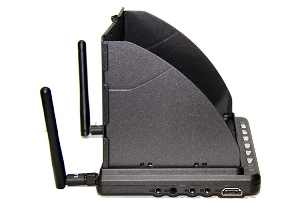 1. Receiver diversity mode. 2. One button signal auto searching, easy to operate. 3. One button to record, cycle covering old videos. 4. Videos playback by device itself. 5. Retractable sun shade. 6. Stereo double speaker.
