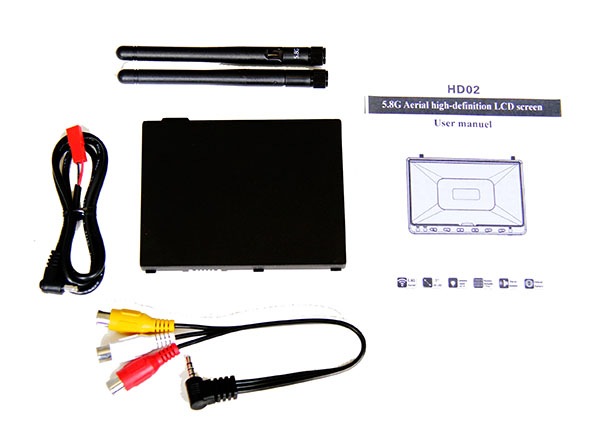 Includes: 1 x Monitor 1 x battery 1 x power cable 1 x vido cable 2 x 5.8G antennas