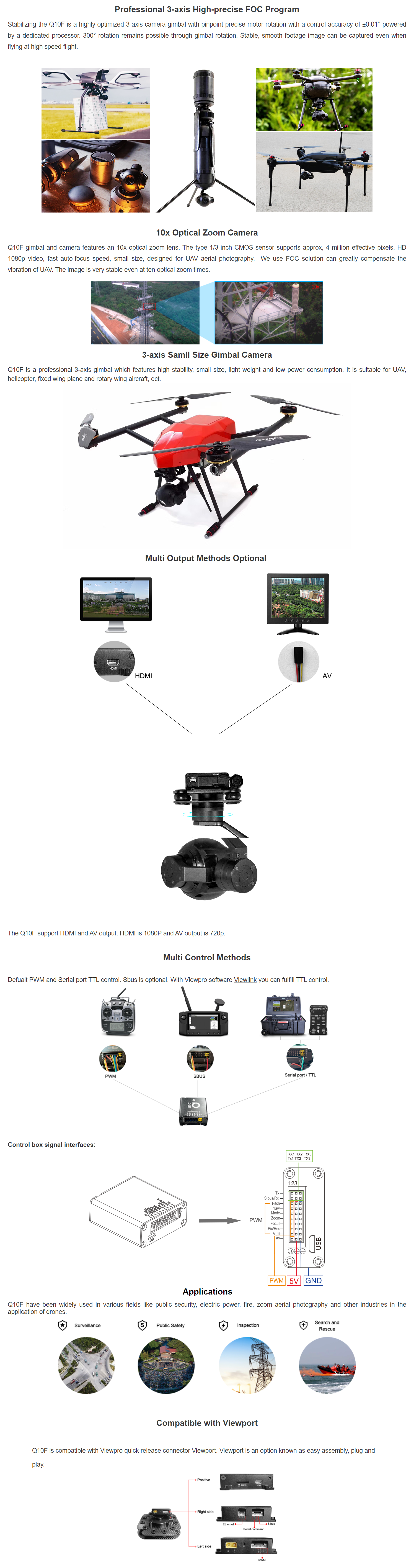 | Tags: Viewprotech Q10F 10X Optical Zoom 3-axis Camera Gimbal |