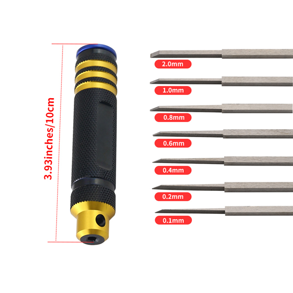 7 x knife blades ( 0.1/ 0.2 /0.4 /0.6 /0.8 /1.0 /2.0mm)