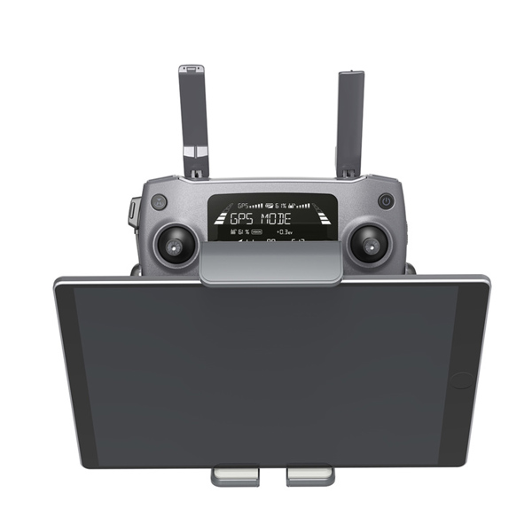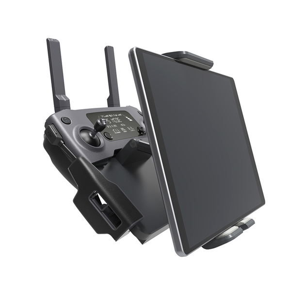 The Mavic 2 Tablet Holder is compatible with most tablets on the market, and the Mavic 2 remote controller. The base can be mounted on the Mavic 2 remote controller's Mobile Device Holder. The spring clamp at the top can hold 7-10 inch tablets. It is made out of aircraft-grade aluminum through precise CNC machining. The foldable design ensures that it is light and stable.