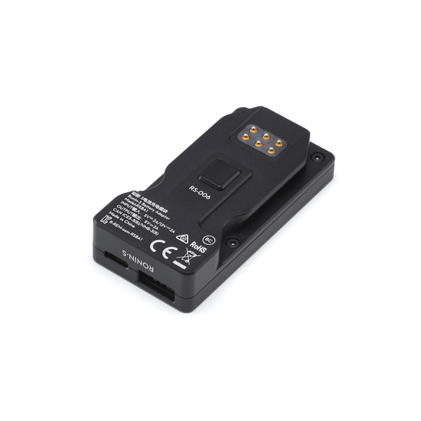 The Ronin-S Battery Adapter is designed to charge the Ronin-S Grip without being attached to the gimbal by connecting it directly to a power outlet. The grip can also work as a portable power bank to charge external devices (e.g., mobile devices, tablets) connected to the adapter's USB-A port.
