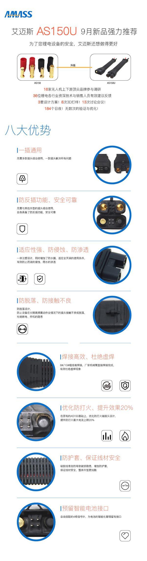 AMASS AS150U Anti-spark Connector W/ Waterproofing Ring, Signal Pin