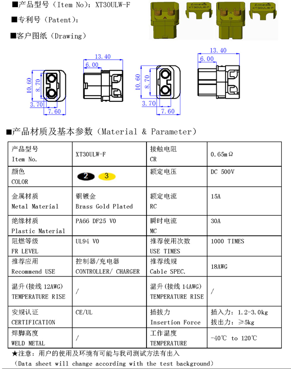 AMASS XT30ULB-F 2mm Bullet Male Connector