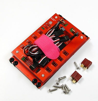 This product is specially designed for large scale petrol airplanes which using multiple large current servos, CDI remote control switch is integrated in this device, receiver space is reserved, it keeps the wiring of your airplane convenient and tidy. There are two power supply connectors, it will increase the reliability and security when use two batteries for power supply.