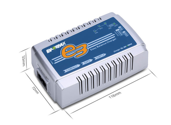 Balance Charges 2S, 3S, 4S LiPo batteries (1 at a time. A Parallel adapter can be used to charge more than 1 battery at a time) Small and Compact Easy Indicator Lights EV-Peak Reliability