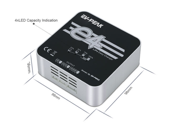 1.Simple,easy 2.Built-in AC power supply 3.Charge in balance mode 4. 4 LEDs indicate the battery capacity percentage