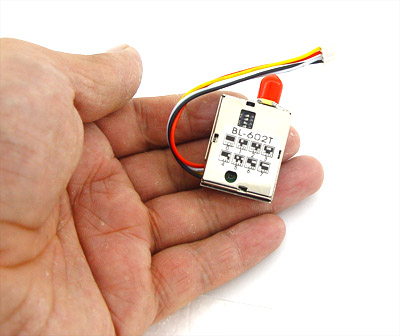 Transmitter: Power input: 12V ± 5% Transmitting current: 150mA Channel number: 4-ch Output power: 200mW Transmitting distance (air to ground): 250m (for reference only, the distance may vary a lot depending on the environments) Dimension: 18 x 28 x 31mm Weight: 15g