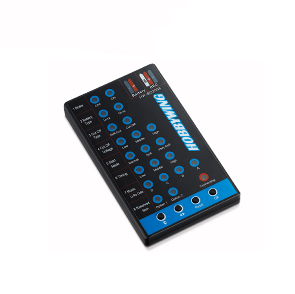 This is the programming card for HW, Balancer, Economic and Professional series brushless speed controllers, you can easily and quickly set up all the ESC parameters without using transmitters.