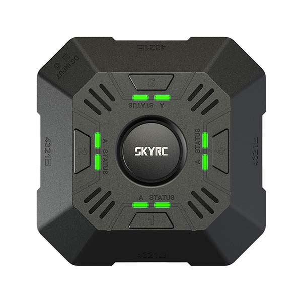 The e4Q multi-function charger uses four completely independent but identical circuits with a power output of 50W per power. It is designed for charging 2-4 LiPo batteries. Insert the battery into the right connector of each port, charge The appliance will also charge 4 battery times. The charging current can be adjusted by pressing the button 2A / 3A / 5A The charging capacity can show the charging current in the LED indicator through the color change